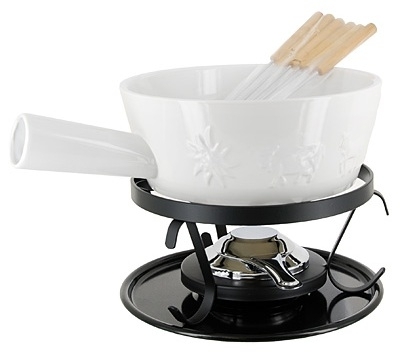 Для сырного или шоколадного фондю идеально подойдет фондюшница с керамической чашой. Чаша из керамики сильно не нагревается, поэтому сыр и шоколад в ней не будет подгорать.