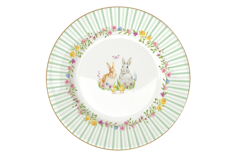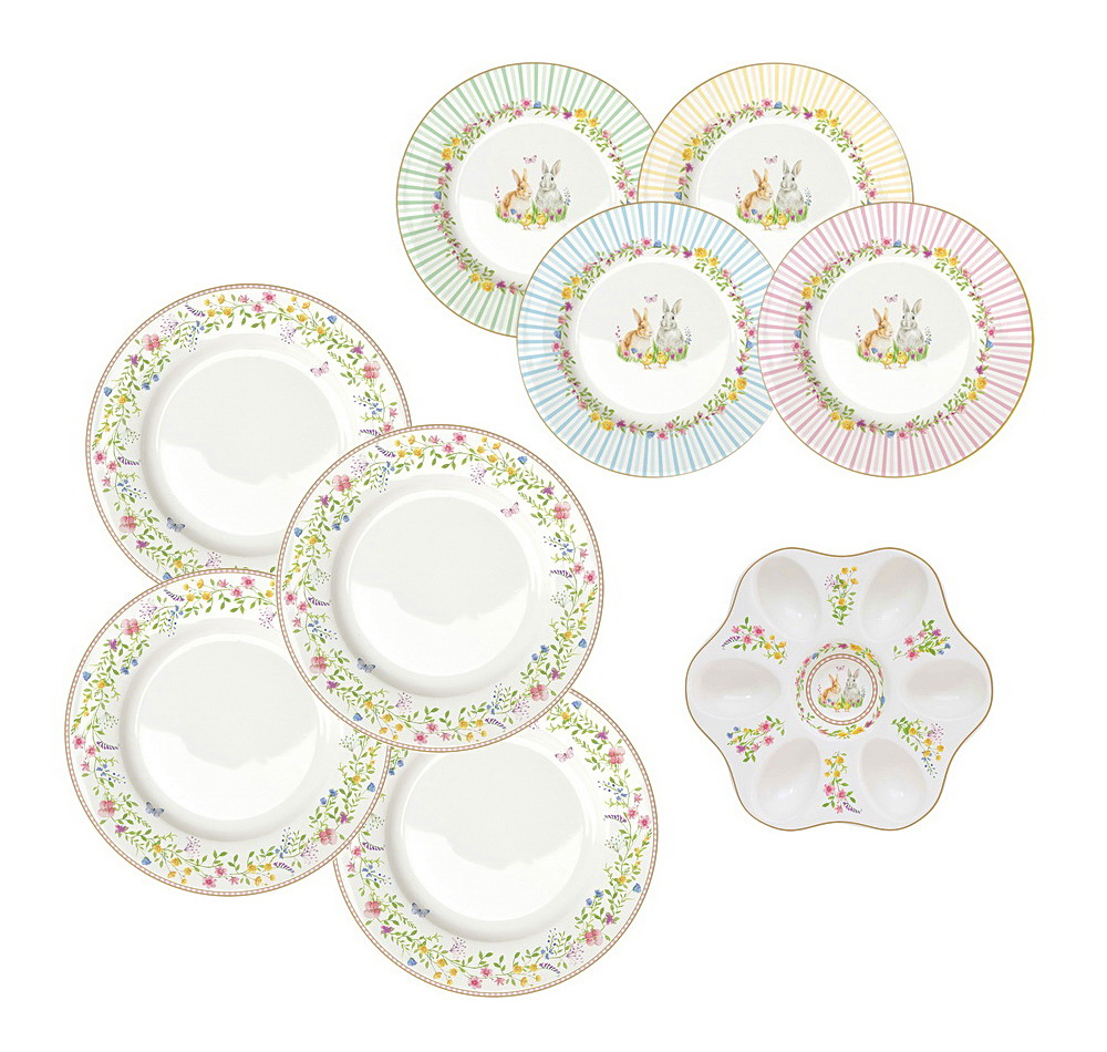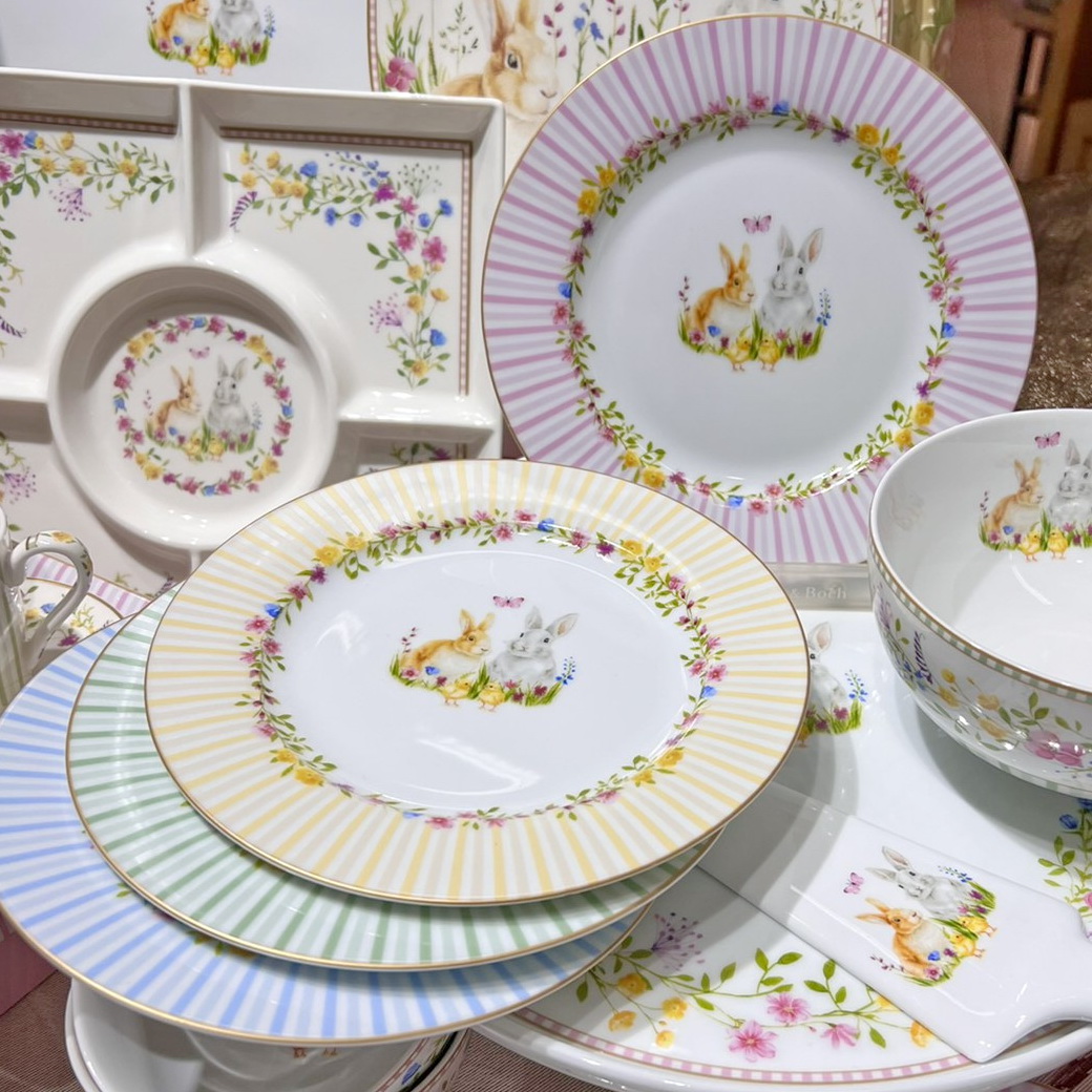 Посуду из высококачественного фарфора украшают оригинальные изображения милых пушистых кроликов, нежных цветов и бабочек, глядя на которые на душе становится тепло и уютно.